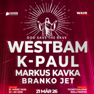 März 21, 2026 22:00 - 4:00WESTBAM, K-PAUL, MARKUS KAVKA, BRANKO JET – God save the Rave Capitol Halle