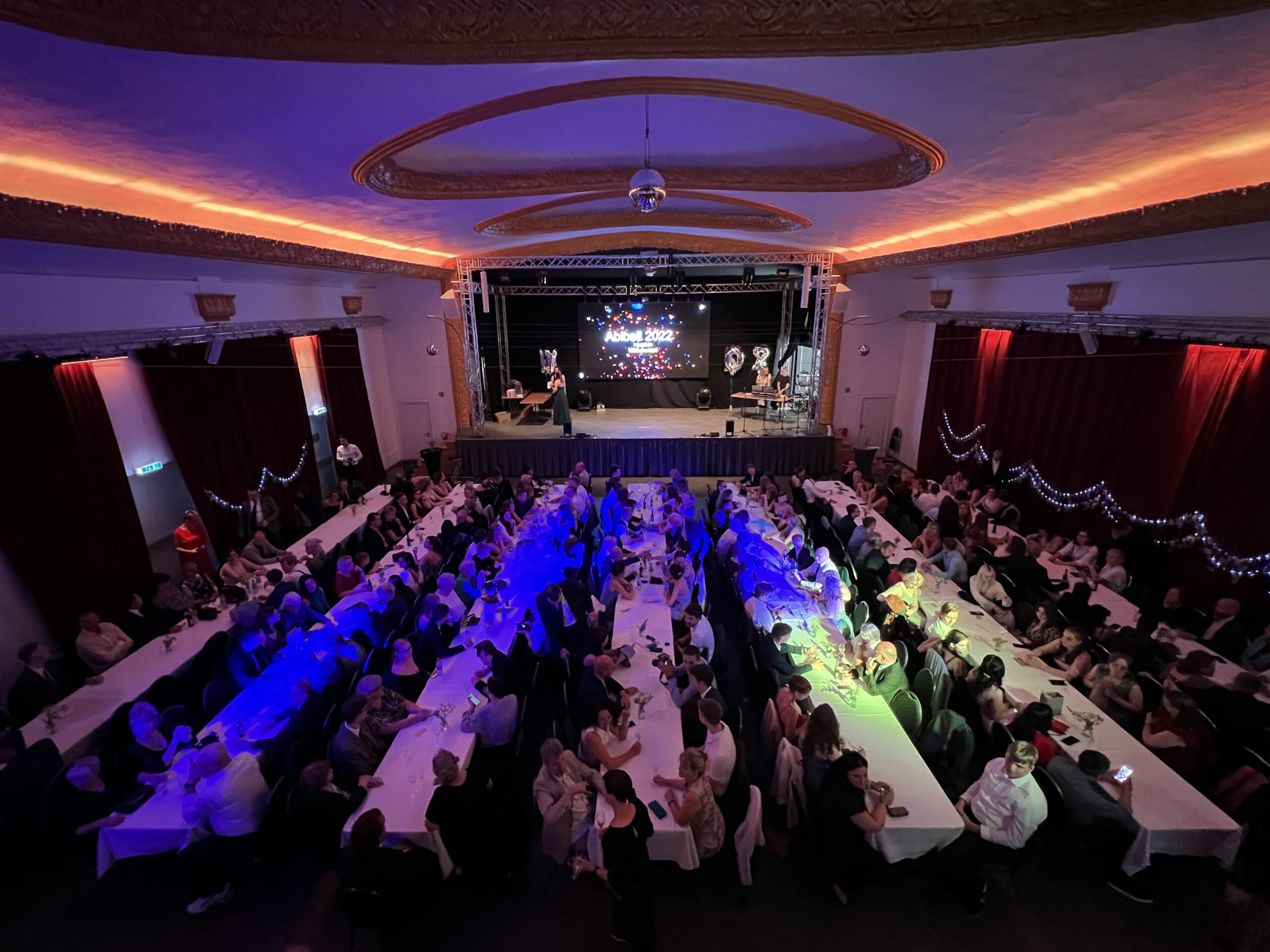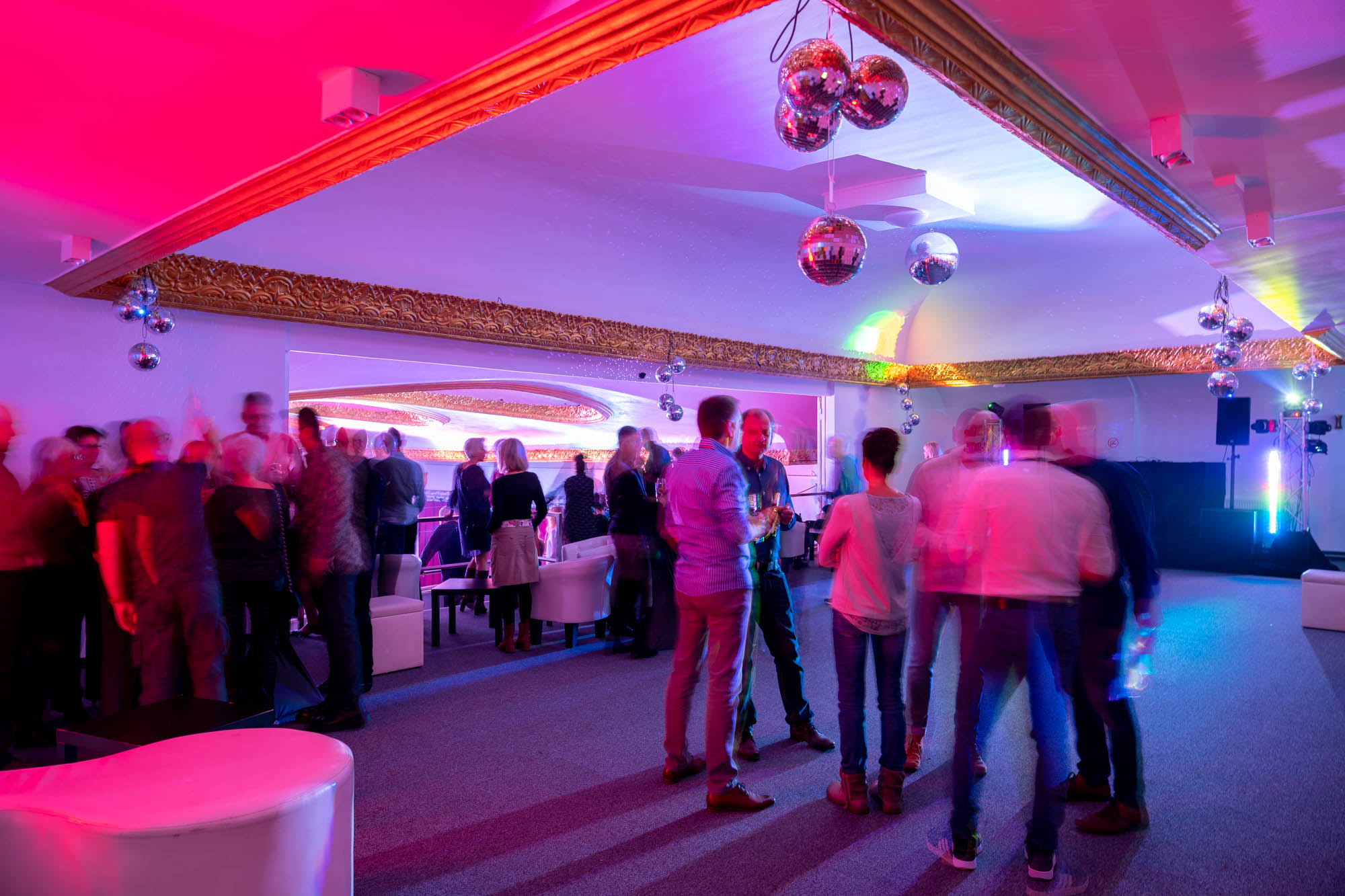 Der atemberaubende Ballsaal, der Hauptsaal des Gebäudes, bietet nicht nur einen wunderschönen Ausblick auf die mit Stuck verzierte Decke, sondern das Ambiente wird durch eine XL LED Wand und eine stilvolle Lichtinstallation ergänzt. Diese ist individuell einstellbar, um somit jeder Veranstaltung gerecht zu werden: Konzerte, Lesungen, Tanzveranstaltungen, Theaterproduktionen, Varieté-Shows sowie Bällen oder andere, speziell auf Kundenbedürfnisse ausgerichtete Events.